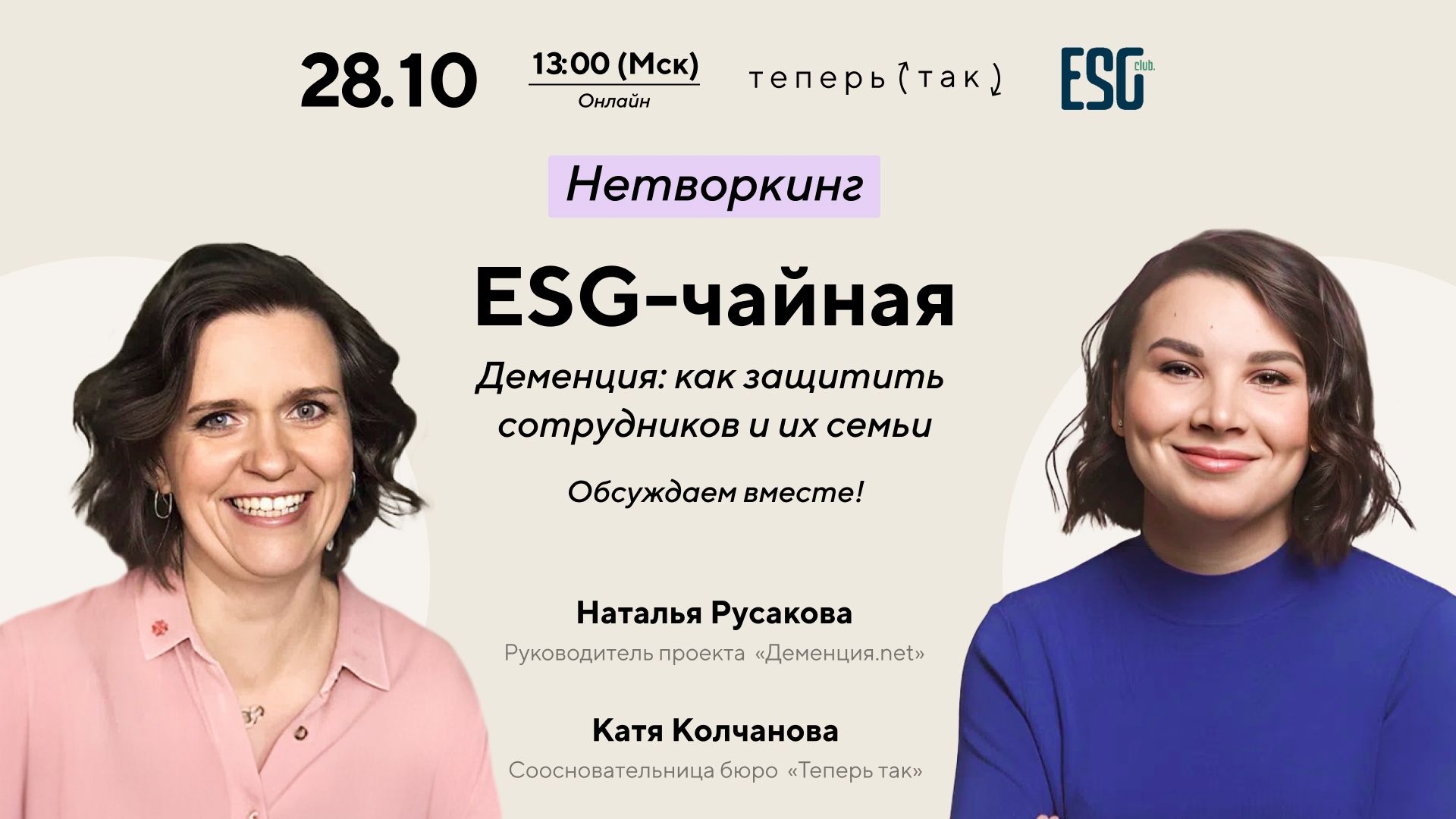 Как позаботиться о сотрудниках и их семьях? Обсудим в кругу коллег по устойчивому развитию — на онлайн-нетворкинге ESG-Чайная*. Тон беседе задаст Наталья Русакова, руководитель проекта «Деменция.net».